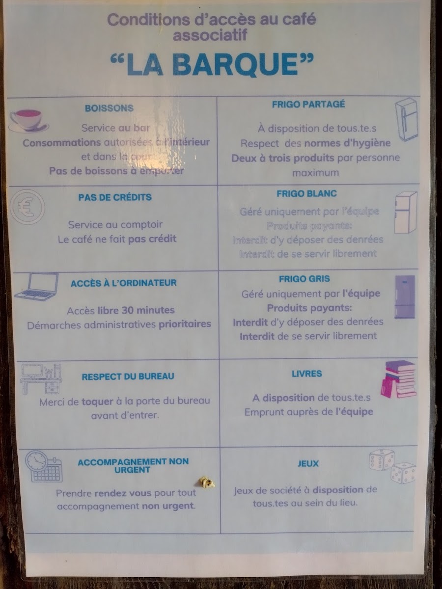 Not only does La Barque provide excellent coffee, but it also stands out for the genuine exchanges that flourish within its walls. Customers have shared their positive experiences, highlighting everything from the "really friendly welcome" by staff, as noted by Sanzô, to the overall sense of community fostered in this vibrant café. Visiting La Barque is not just about satisfying your palate but also engaging with a welcoming and supportive group of people.